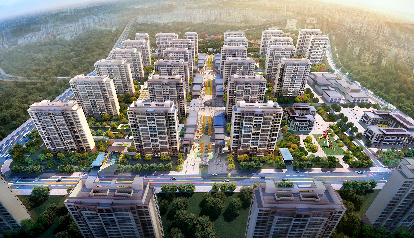 該項目尊重已有地塊規(guī)劃設計,保留原有空間功能軸線、大小平嶺村安置區(qū)布局;根據周邊用地、交通情況布局配套商業(yè)、幼兒園。
