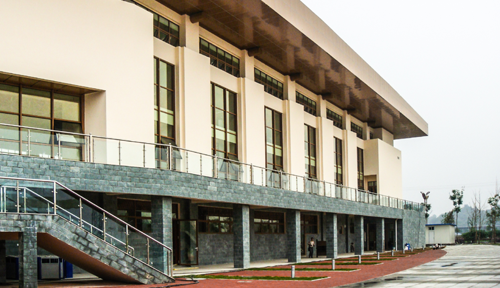 北川羌族自治縣體育中心位于新縣城南端的95 號街坊內,用地面積5.6 公頃,現狀地形平坦。北側為濱河路,毗鄰永昌河公園景觀帶,西側為禹龍路,隔路與安昌河相望,東側為貫穿新縣城的交通干道- 齊魯大道,用地四周環(huán)路,交通便利,地處北川新縣城的南門戶,是進入縣城的標志性建筑。