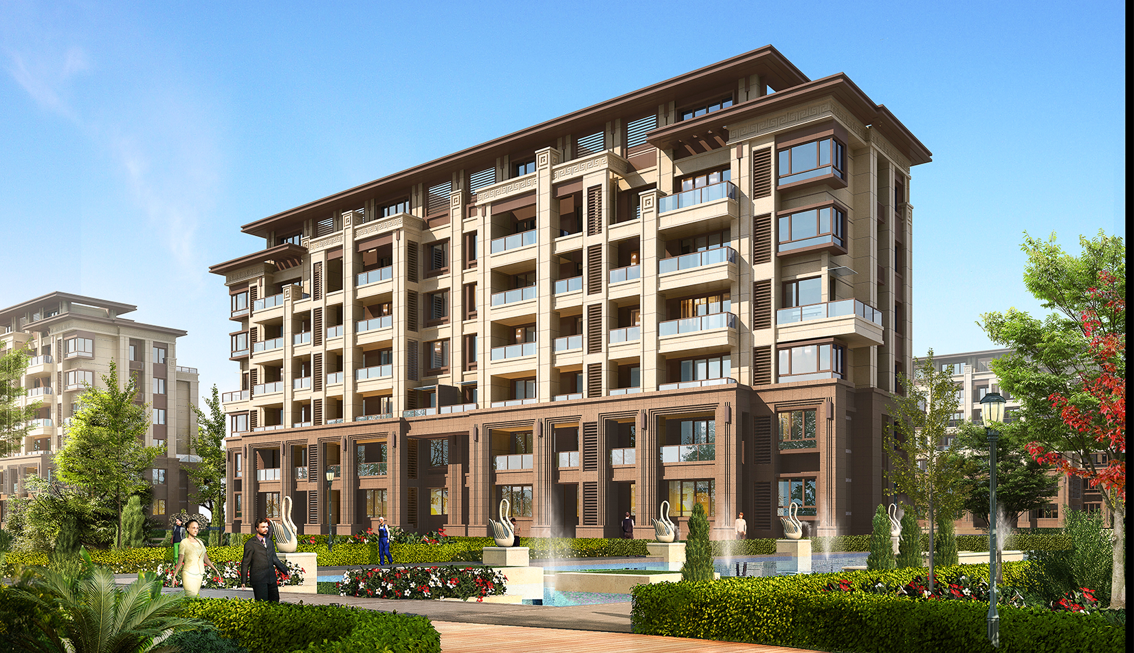 通過對基地場地價值的分析,綜合考慮容積率、建筑密度及航空限高等問題,以小高層住宅、花園洋房、疊拼別墅結(jié)合考慮規(guī)劃布局。景觀主要應(yīng)以內(nèi)部打造為主。建筑布局外高內(nèi)低,將多層產(chǎn)品放在中間較好的位置,同時形成建筑高度向中心景觀帶疊落的空間感覺,最大化利用中心景觀帶。