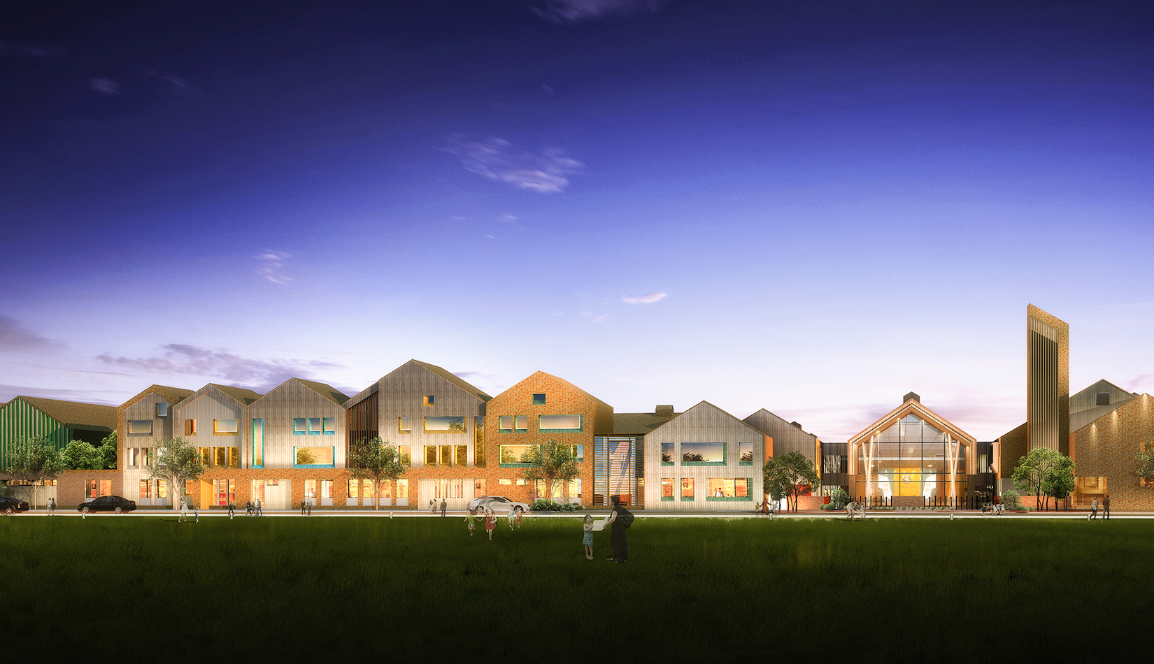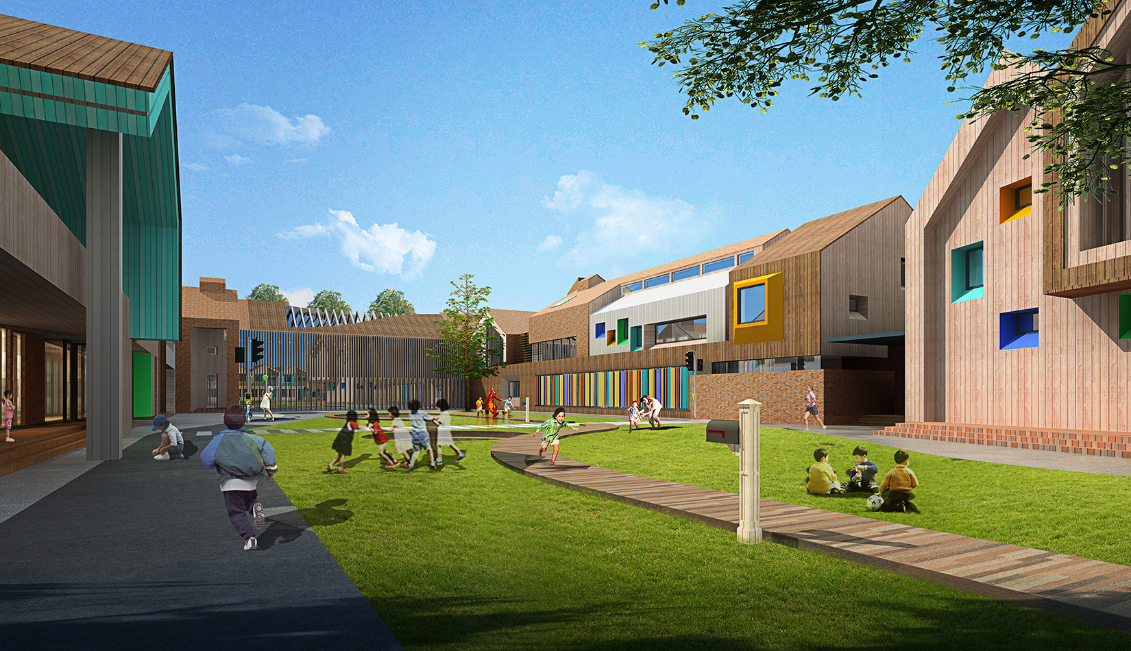 該項(xiàng)目設(shè)計(jì)以“陽關(guān)小鎮(zhèn)”為設(shè)計(jì)概念,采用“城鎮(zhèn)”規(guī)劃布局,通過引入街道、廣場(chǎng)、庭院等元素,將校園空間打造為小鎮(zhèn)場(chǎng)景,讓學(xué)生感受城市氛圍及生活氣息。
