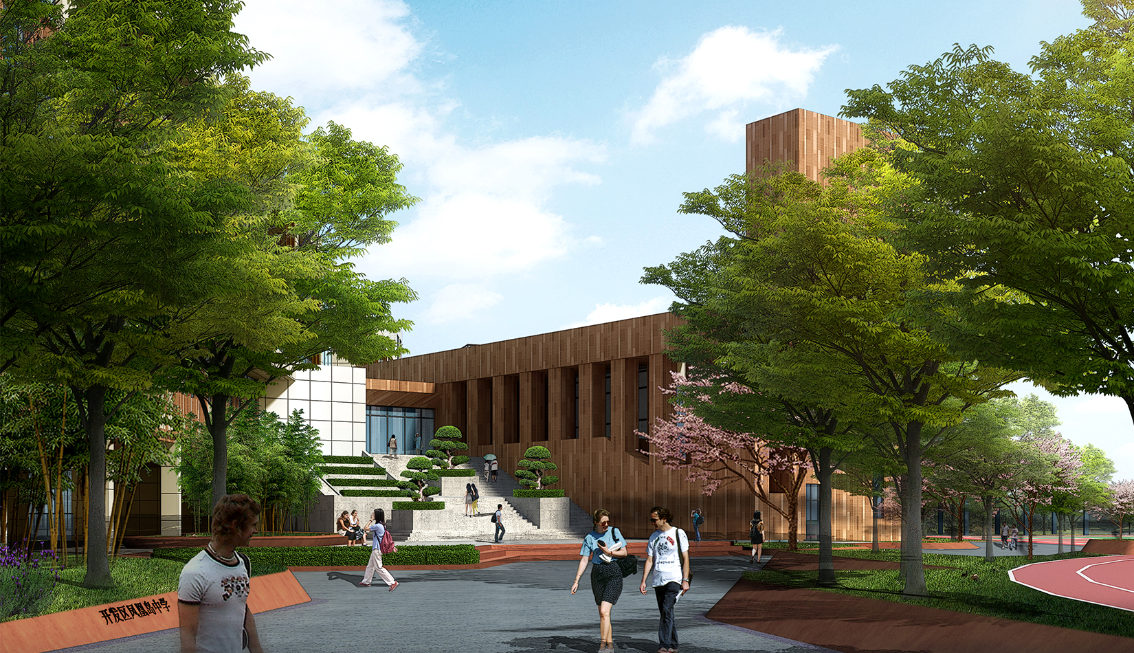 以鳳凰為設計思想來源,建筑為骨,環(huán)境為翎,合理組織前廣場的空間結構。