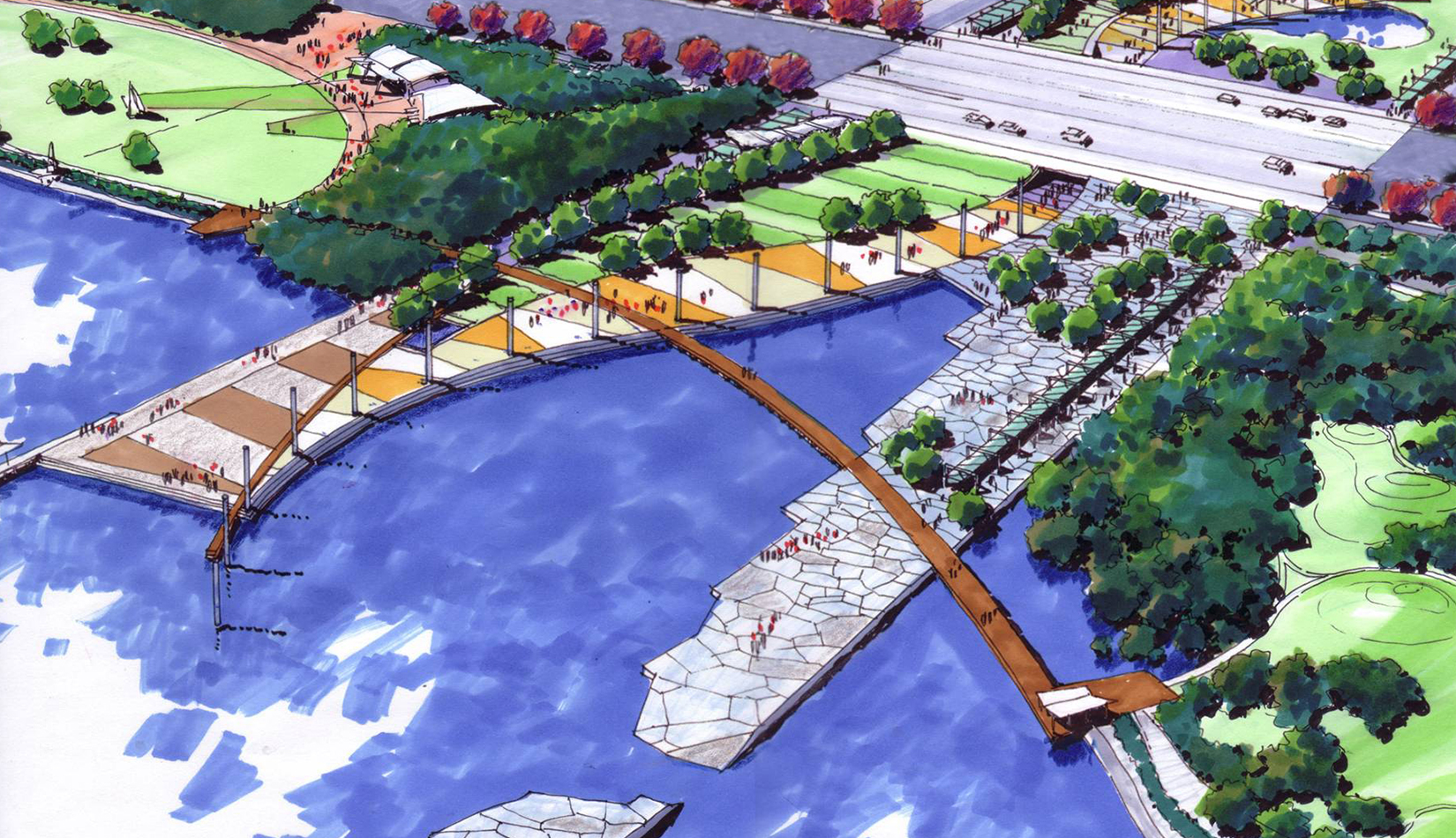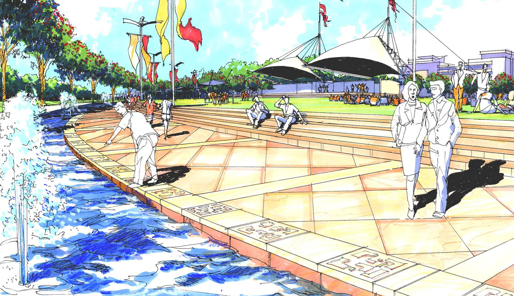 本著“文化著陸于自然”、“邊界突出聯(lián)系”的設(shè)計理念,規(guī)劃將灣島全線自西向東分為濱海運動休閑、親水廣場、公共藝術(shù)公園、人與自然公園和碼頭休閑娛樂5 個景區(qū),為基地北側(cè)的城市功能區(qū)乃至黃島區(qū)提供了一片高品質(zhì)的、現(xiàn)代濱海城市休閑景觀帶,增強區(qū)域的軟環(huán)境競實力。