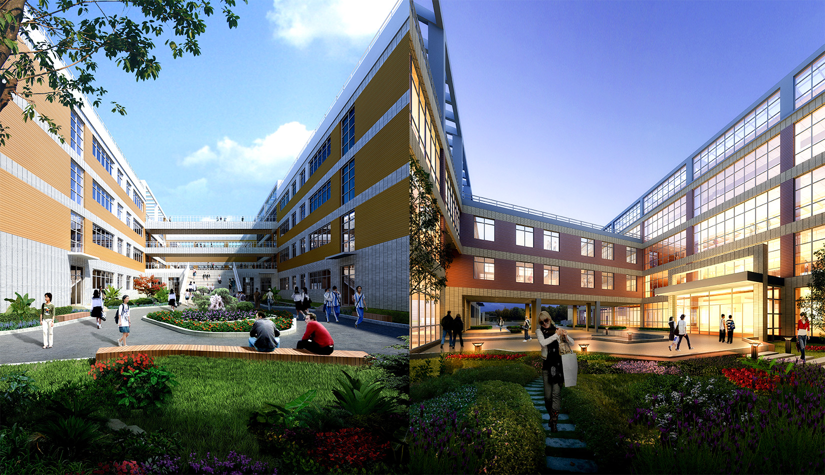 通過對功能、流線的科學(xué)整合與單體建筑的精心設(shè)計(jì),運(yùn)用現(xiàn)代的建筑語言營造富有強(qiáng)烈時(shí)代感的校園環(huán)境,并不斷探索開放、和諧、人文的校園設(shè)計(jì)策略,使建筑體現(xiàn)時(shí)代特征。